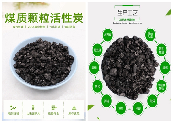 煤質顆粒活性炭選用優質無煙煤為原料,采用先進工藝加工精制而成。外觀為黑色柱狀顆粒。具有孔隙率發達、比表面積大、吸附力強、機械強度高、易反復再生、造價低等特點。用于有毒氣體凈化、廢氣處理、工業和生活用水的凈化處理、溶劑回收等方面。